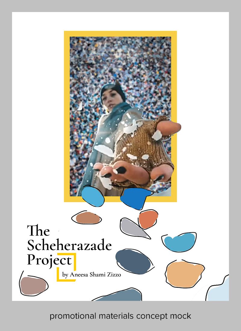 Aneesa Shami Zizzo is a fiber artist who is currently creating a series of abstract-expressionist collages as an ongoing exploration of orientalism in Western media, specifically in National Geographic magazines. I designed these promotional layouts and the project logo with the intention of repurposing the iconic Nat Geo cover as a visual way to tease the contents of the art, which are torn pieces of the magazine. She and I will continue creating interpretative photography as an offshoot project that parallels the progress of her Scheherazade collages.